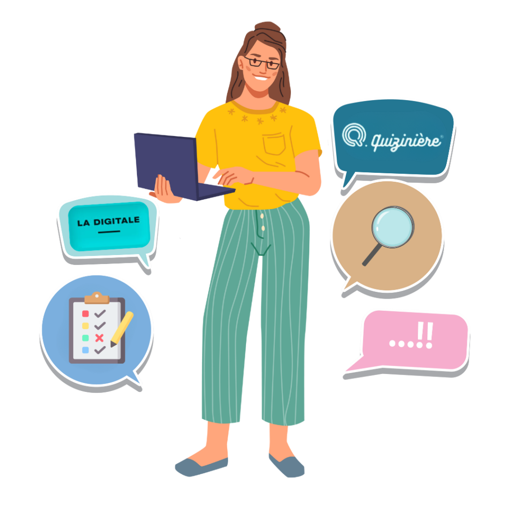 • Utiliser des outils numériques comme ceux de « La Quizinière » et « La Digitale » pour concevoir des activités interactives adaptées à vos publics